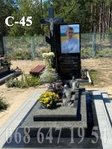 Одинарний гранітний пам'ятник моделі С-45 з комплектацією, як на фото. Фотоскло розміром 40*50см, наклеєне на плитуЗагальні розміри 170(в)*215(д)*135(ш) Цей меморіал відрізняється вираженою релігійною спрямованістю та класичним стилем виконання. Основним матеріалом слугує високоякісне чорне габро, яке ідеально доповнюється сірим гранітним цоколем.