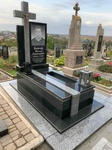 Одинарний гранітний пам'ятник моделі C-08 з комплектацією, як на фото. Загальні розміри 175(в)*235(д)*160(ш) Виконаний із комбінації високоякісного чорного габро та сірого покостівського граніту.