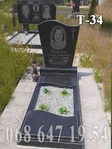 Одинарний гранітний пам'ятник Т-34 виготовлений з сірої покостівка та чорного лабрадориту (стела базальт або габро). Складається з стели, тумби, бордюр та поличок. Розміри 80(в)*1421(д)*60(ш).