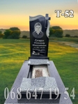 Гранітний пам'ятник Т-52 виготовлений з сірої покостівки та чорного лабрадориту (стела з базальту або габра). Складається з стели, тумби, бордюр, накривних поличок-хвильок та плитки (обложки). Розміри 130(в)*180(д)*100(ш).
