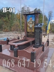 Ексклюзивний меморіальний комплекс для військовослужбовця, виконаний із комбінованого натурального граніту (чорний габро та червоний лізниківський), стане гідним символом вічної пам'яті та шани полеглому захиснику України. Розміри 210(в)*280(д)*270(ш)Монумент виконаний в урочистому та вишуканому стилі з продуманою символікою.Композиція включає фігурну арку, що спирається на точені колони. На центральній чорній стелі розміщено кольоровий портрет на фотосклі розміром 100*50см та написи глибоким золотомПо периметру встановлена елегантна гранітна огорожа, що формує завершений меморіальний комплекс.