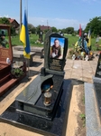 Фігурна стела акцентує увагу на портреті захисника (фотоскло 40*60см), а хрест і гравійовані написи підсилюють духовний і символічний зміст меморіалу.