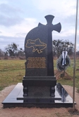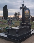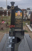 Військовий гранітний пам’ятник моделі В-20, виготовлений з чорного рабра та зеленого граніту човнова. Розміри 205(в)*250(д)*170(ш).