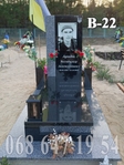 Модель В-22 — це лаконічний меморіальний комплекс, створений для гідного вшанування пам’яті захисників та близьких людей. Пам'ятник виготовлений із поєднання преміального чорного габро та світло-сірого покостівського граніту, що надає конструкції суворого, але водночас світлого і монументального вигляду.Розміри 130(в)*210(д)*120(ш).